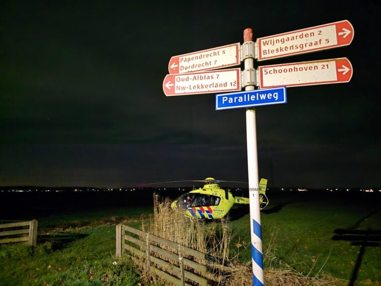 Daarvoor landde aan de Parallelweg-Noord een traumahelikopter. Het is gebruikelijk dat de heli op dat tijdstip landt buiten de bebouwde kom. (Foto Ruben van der Sterren / Sliedrecht24)