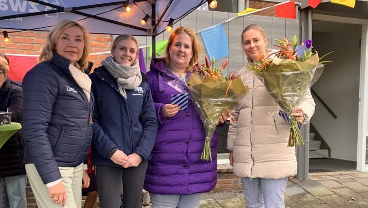 Lilian en Rachel van de bewonersklankbordgroep werden bedankt voor hun waardevolle inbreng en betrokkenheid door Monique van Tablis Wonen en Julia van Zwaluwe Bouw. (Foto Tablis Wonen)