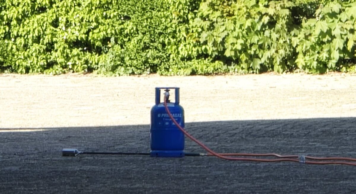 Op het terrein van de evangelische christengemeente Rehoboth stond wel een gasfles met brander (Foto onder Ruben van der Sterren / Sliedrecht24). Daarmee kan je onkruid bijvoorbeeld wegbranden. Of één en ander verband met elkaar heeft, is niet bekend.