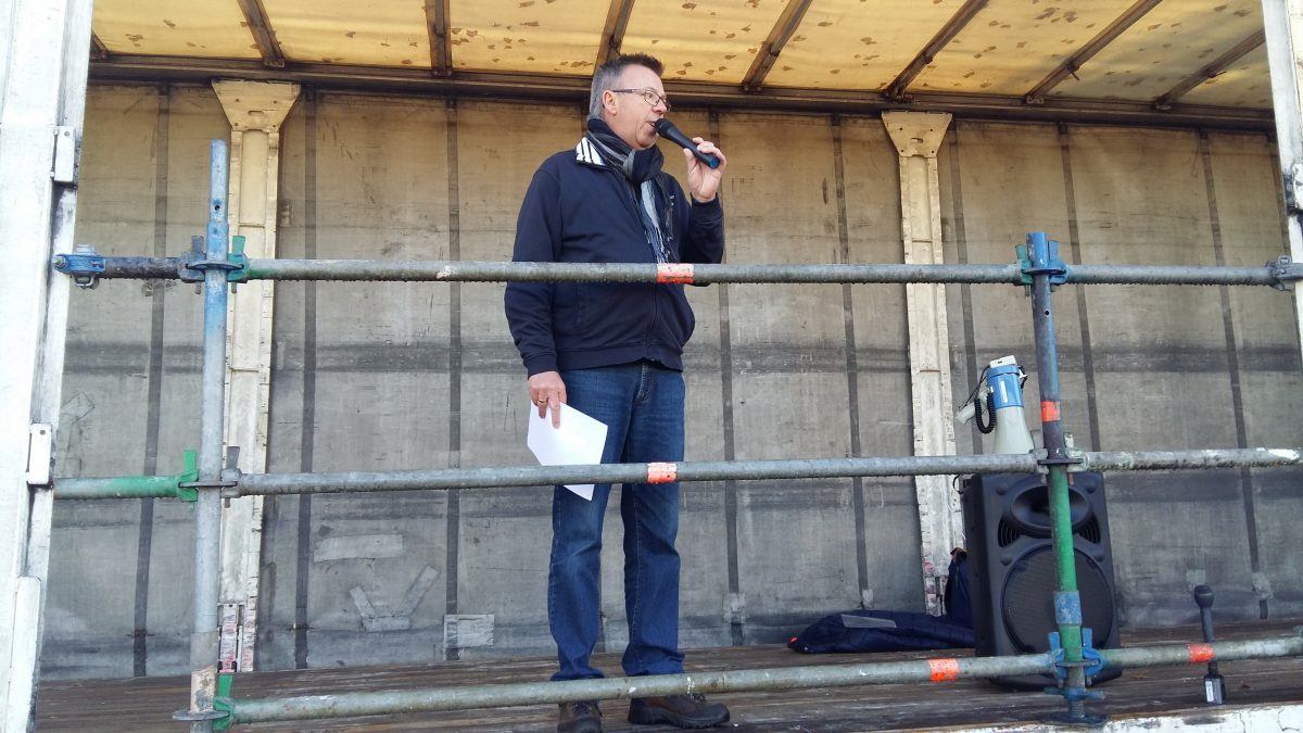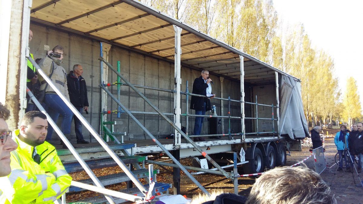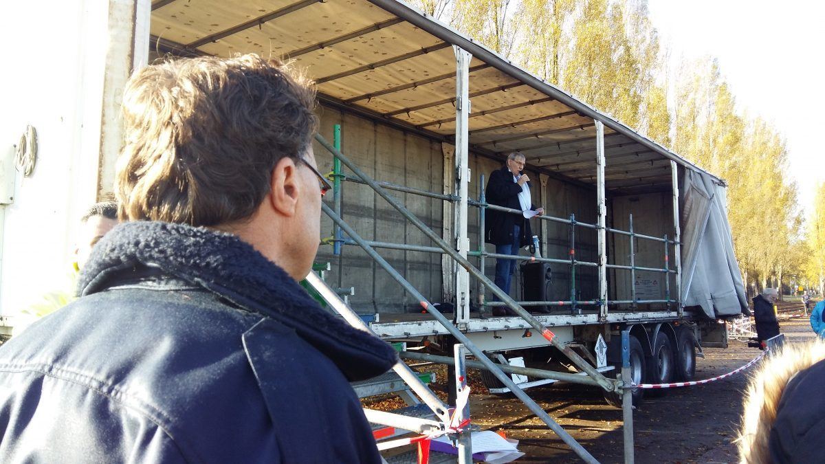Kort na aankomst beklom Sliedrechter René de Munck het podium van de vrachtwagen en leidde steeds de sprekers in. Bram de Winter opende, daarna volgde Willem Buitelaar (woordvoerder DuPont), Erik Meijer (directeur Chemours), Kees van der Hel en Hans van der Slot.
