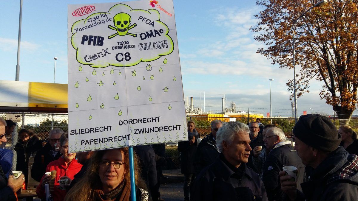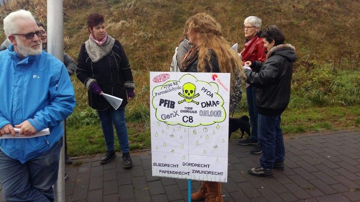 DORDRECHT / SLIEDRECHT – Zo’n 200 mensen hebben zaterdagmorgen 5 november 2016 voor het chemiebedrijf Chemours / DuPont aan de Baanhoekweg gedemonstreerd tegen de giftige uitstoot. Onder hen waren zo’n 80 mensen, die vanuit Sliedrecht kwamen.