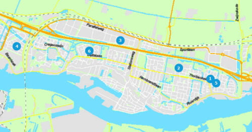 5. Werkzaamheden fietspad nabij bushalte Thorbeckelaan (achter woning Hoepel 1) in week 43 t/m 47 i.v.m. rioolwerkzaamheden.