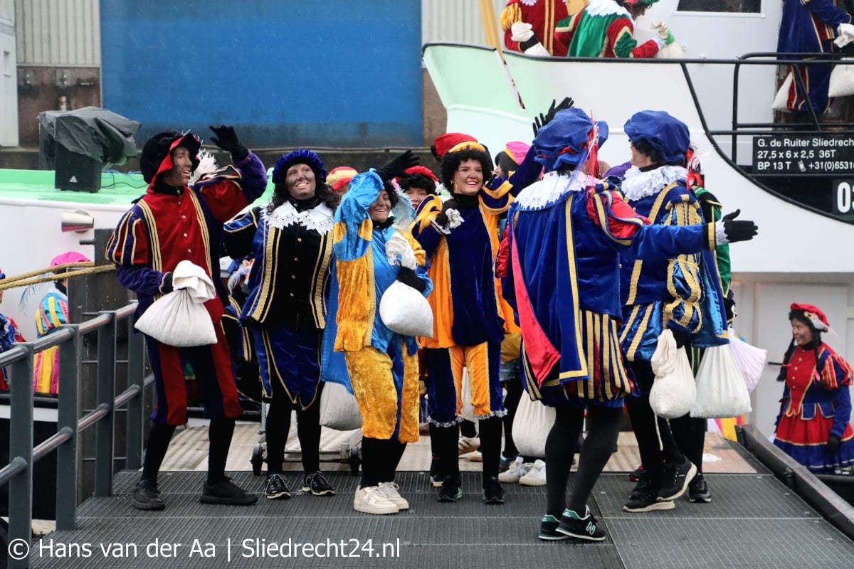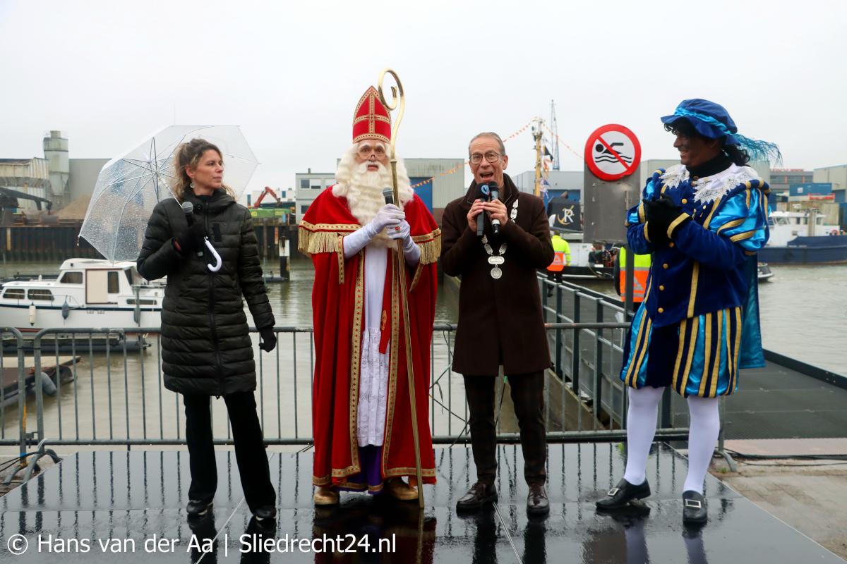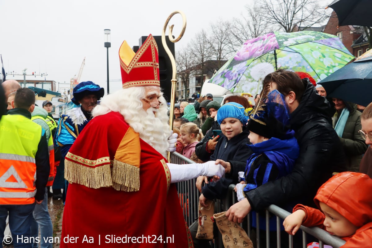 SLIEDRECHT – Sinterklaas en zijn Pieten zijn zaterdagmorgen 15 november 2025 na een lange tocht uit Spanje aangekomen in Sliedrecht. De Pakjesboot meerde aan bij de Schuttevaerkade in de gemeentehaven, waar honderden kinderen en ouders/verzorgers de nattigheid trotseerden.