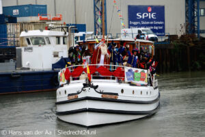 Burgemeester Jan de Vries (CDA) heette de Sint welkom in het Baggerdorp. Op de kade werd Sinterklaas toegezongen door de kinderen. De Pieten dansten mee op de muziek. Na het welkomstwoord van de burgemeester begaf het gezelschap zich door de menigte via de Havenstraat richting het raadhuis. Tussen de menigte in de Havenstraat liepen vier ‘zwarte Protestpieten’, zij werden door de organisatie vriendelijk verzocht weg te gaan. Voor de Sint breekt na de Sinterklaasshows zaterdagmiddag in sporthal De Stoep een drukke tijd aan. Hieronder een fotoverslag. De foto’s zijn gemaakt door Hans van der Aa.