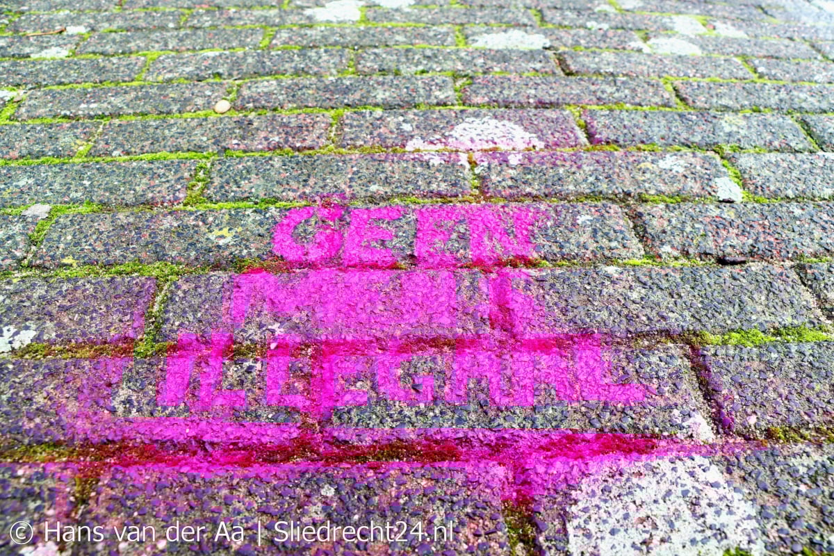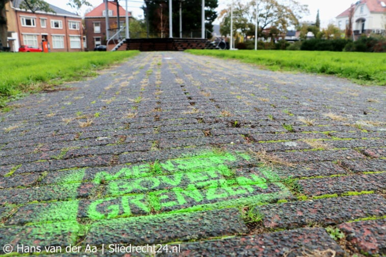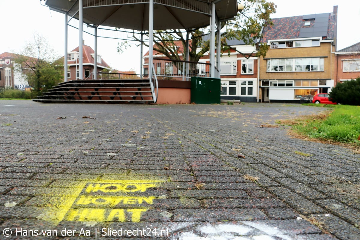 SLIEDRECHT – In de vroege ochtend van zaterdag 25 oktober 2025 heeft de actiegroep Dolle Mina met krijtverf een twintigtal leuzen gespoten op het terrein rondom de muziektent op het Dr. Langeveldplein. Ondanks het feit dat de demonstratie na het middaguur is gecanceld, is deze ‘ludieke’ krijtactie – zoals ze het zelf aankondigden – doorgegaan.
