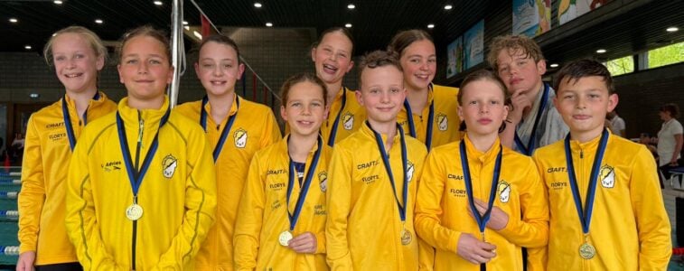 ROZENBURG / SLIEDRECHT – Met tien jonge, sportieve en fanatieke zwemmers trok Zwem- en Polovereniging Door Water Fit (DWF) zaterdag 18 april 2026 naar Rozenburg voor het vijfde deel van de O12 wedstrijd. In totaal zijn er tien persoonlijke records behaald. Op het programma stond een mooie mix van korte en lange afstanden.
