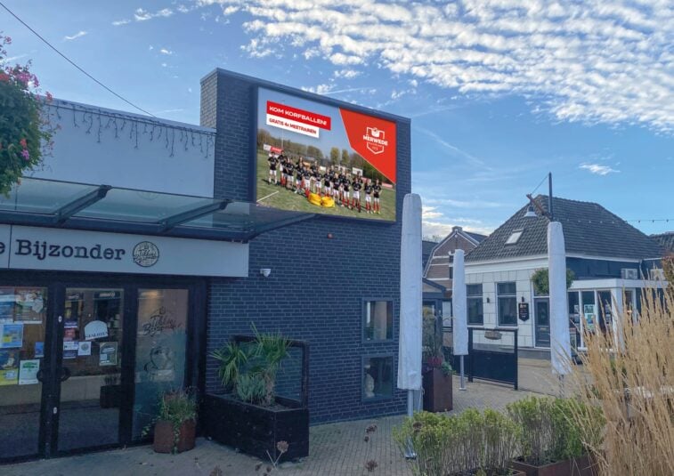 SLIEDRECHT – Korfbalvereniging Merwede/Multiplaat en stichting Vrienden Zorghuis Alblasserwaard slaan de handen ineen voor de exploitatie van het XXL LED-scherm aan winkelpromenade Kerkbuurt, aan het Merwedeplein.