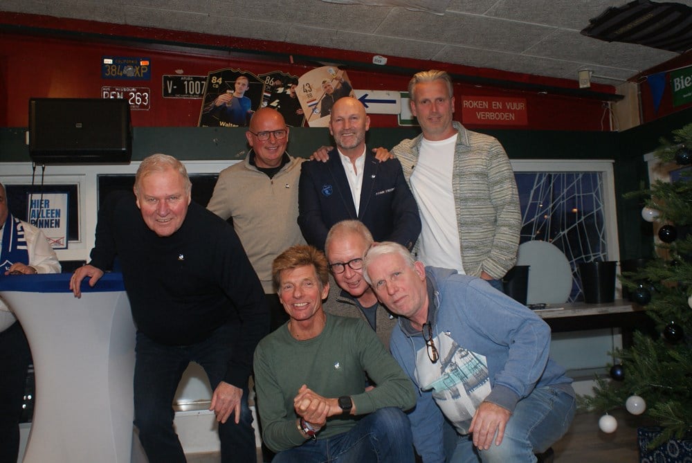 Zeven mannen met een blauw-wit hart zijn in het zonnetje gezet (foto hierboven) tijdens de nieuwjaarsreceptie. Dat waren Aart van Wijk (60 jaar lid), Bert Nederlof (60 jaar lid), Dirk van Eck (60 jaar lid), Ron Vlot (50 jaar lid), Marco van Zuijdam (50 jaar lid), Roel de Jager (40 jaar lid) en Erwin de Waard (40 jaar lid).