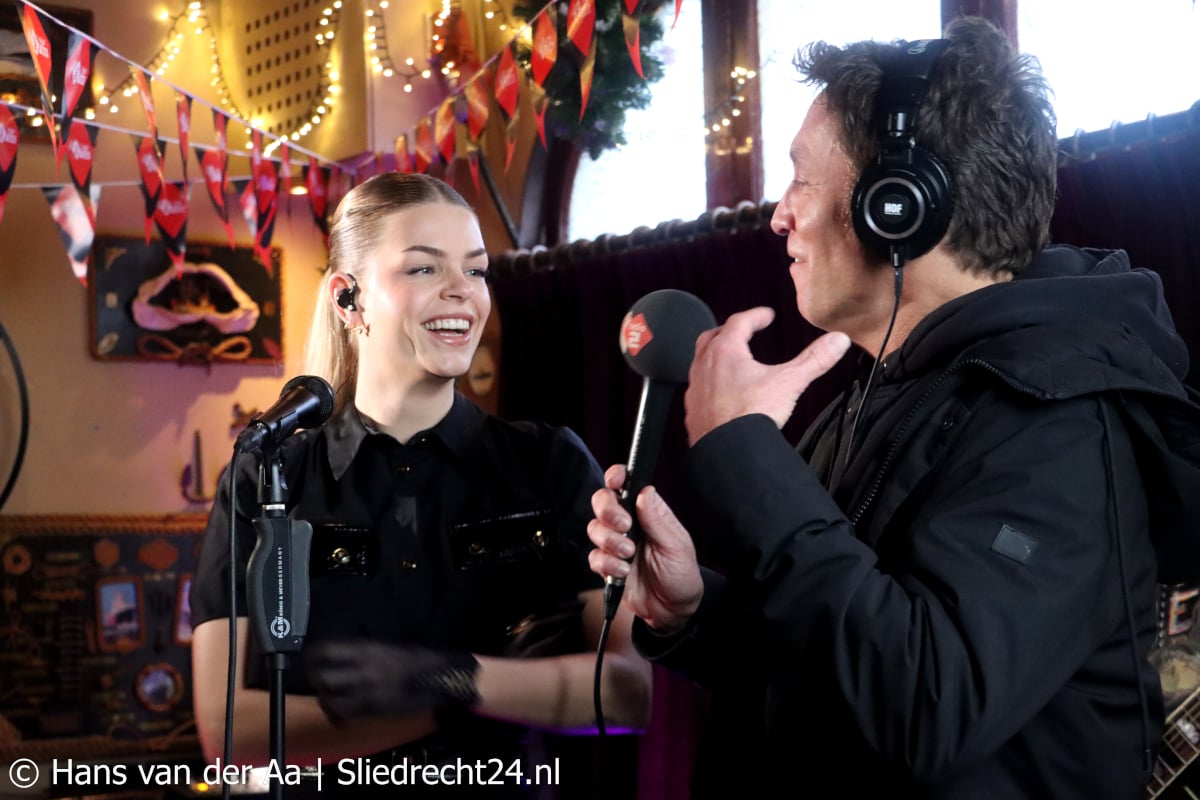 SLIEDRECHT – Tijdens de Stemweek van de NPO Radio 2 Top 2000 toert de Stembus deze week door Nederland en passeert daarbij verschillende cafés. Donderdag 4 december 2025 maakte de bus een tussenstop bij ‘het kleine café aan de haven’: Café Korevaar aan de Havenstraat. Niemand minder dan zangeres – en op dat moment nog potentieel Songfestivalkandidaat – Davina Michelle trad daar tijdens de uitzending live op.