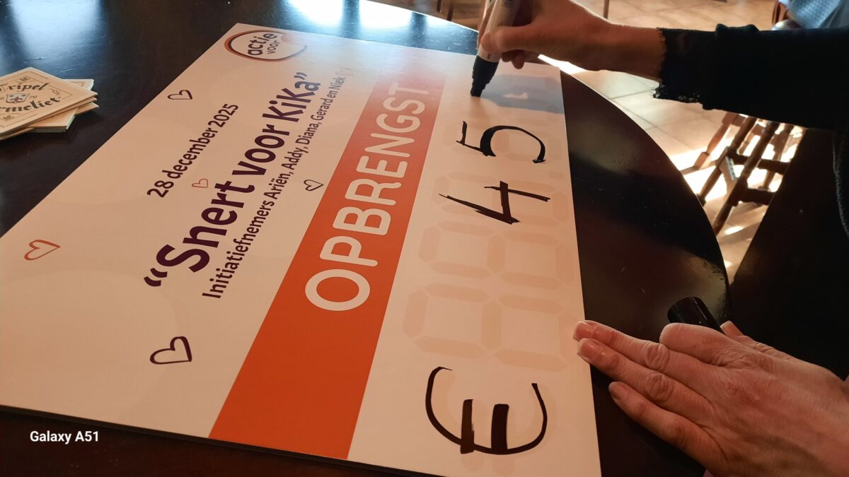 SLIEDRECHT – Stichting Kinderen Kankervrij (KiKa) heeft zaterdagmiddag 17 januari 2026 een cheque gekregen van de organisatoren van de actie ‘Snert voor Kika’. De actie bij Café Korevaar aan de Havenstraat bracht eind december 2025 een bedrag van € 4.207,10 op. Dat bedrag werd zaterdag aangevuld door eigenaar Krista Buiteman van Café Korevaar tot een rond bedrag van € 4.500,–.