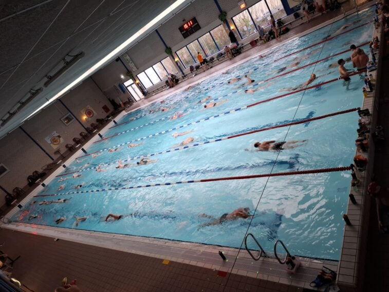 SLIEDRECHT – Oliebollen wachten de deelnemers aan de 100×100 meter oliebollen zwemmen zaterdag 27 december 2025 in bronbad De Lockhorst. Iedereen die honderd meter borstcrawl binnen twee minuten kan zwemmen, was welkom. Organisator van het evenement was Gerben van Alphen.
