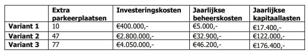 3. Een variant met 77 extra parkeerplaatsen in een uitbreiding van de te bouwen parkeerkelder.