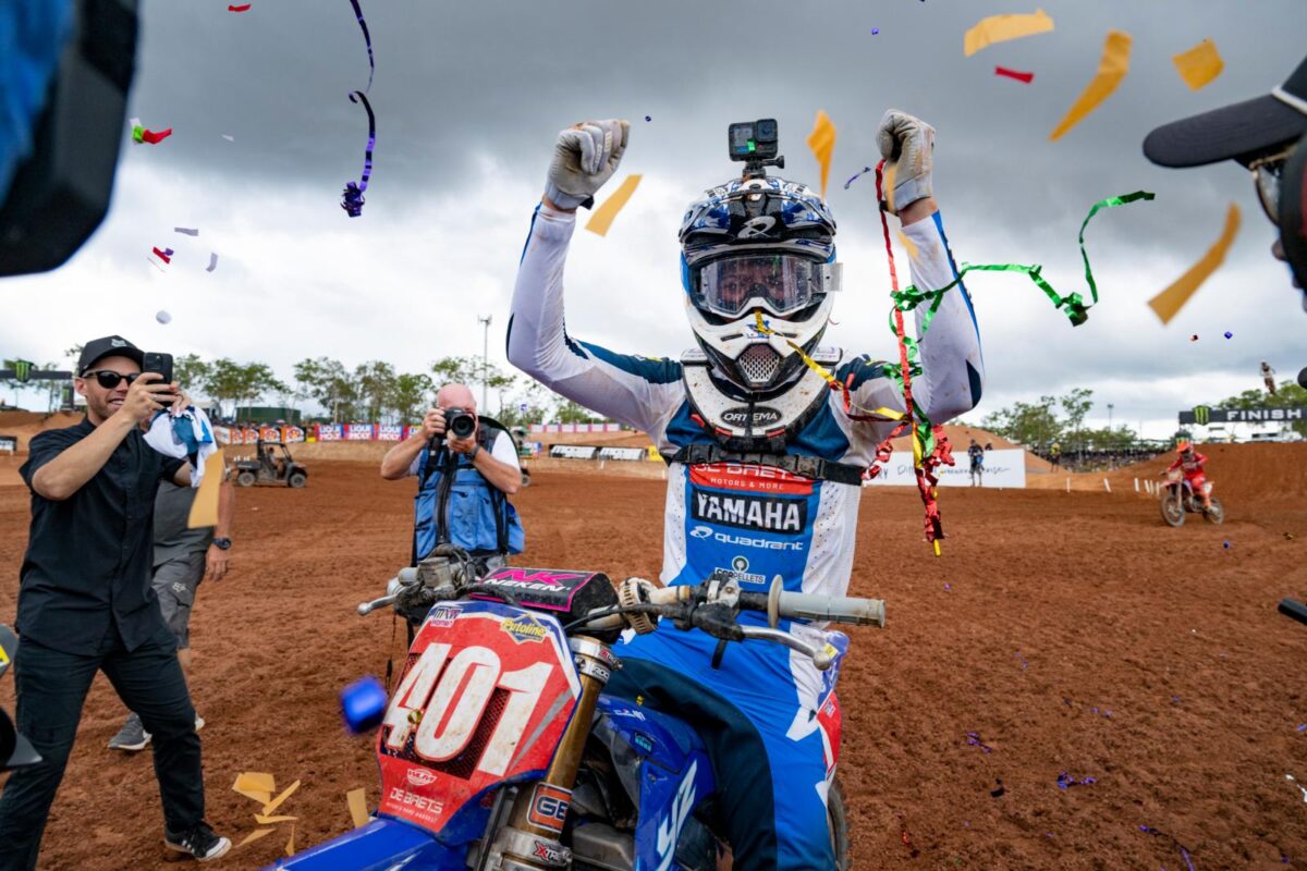 DARWIN (AU) / SLIEDRECHT – Een bijzondere prestatie! Motocrosser Lotte van Drunen (18) van het De Baets MX Team is zondag 21 september 2025 op haar met GYTR uitgeruste Yamaha YZ250F tijdens de MXGP in Darwin in Australië voor de tweede keer op rij wereldkampioen geworden in de WMX Motocross. Een derde en vierde plaats in de twee spannende manches waren voldoende om de felbegeerde wereldtitel opnieuw veilig te stellen. Achttien jaar, en al twéé wereldtitels…