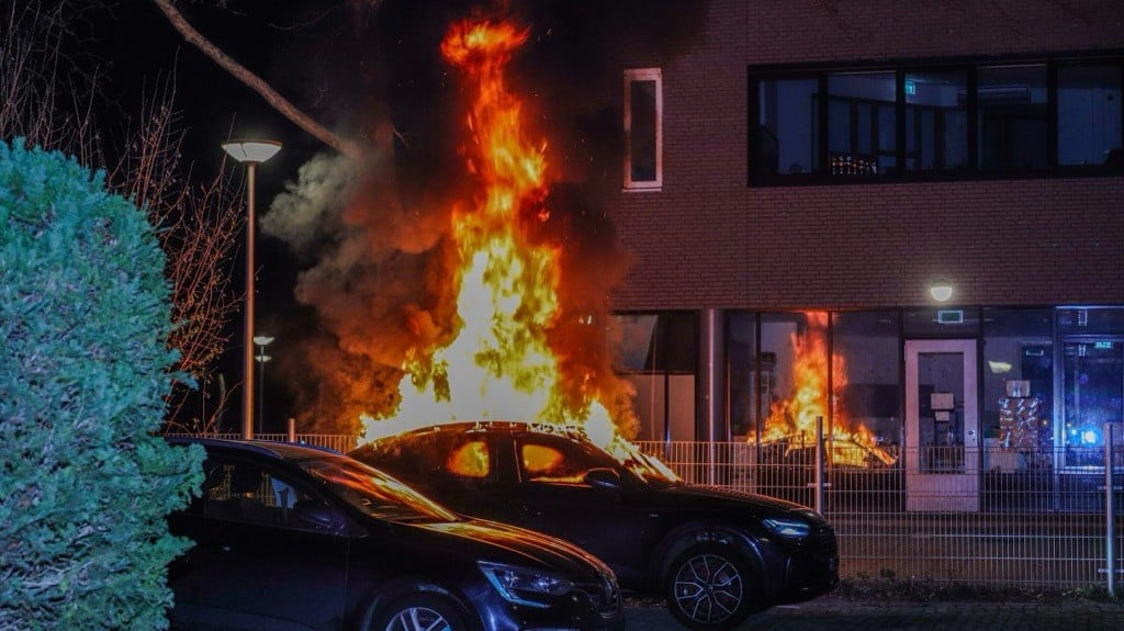 In een parkeervak aan de Locksweer raakte een auto in brand (foto hierboven). De wagen is total loss. De wagen stond geparkeerd in de buurt van de school Roald Dahl.