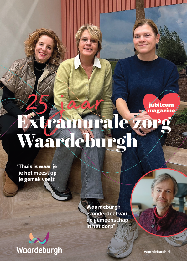 Ter gelegenheid van het jubileum is een speciaal magazine (zie foto hierboven) gemaakt, voor en door thuiszorgmedewerkers. In het magazine staan vermakelijke terugblikken, persoonlijke verhalen, interviews en zowel serieuze als luchtige bijdragen. Het magazine is bedoeld voor alle thuiszorgmedewerkers, maar ook voor andere geïnteresseerden die een inkijkje willen krijgen in 25 jaar zorg aan huis bij Waardeburgh. Het jubileum wordt ook samen gevierd. Voor medewerkers worden twee feestavonden georganiseerd, compleet met eten en bingo. De prijzen voor de bingo zijn volledig gesponsord. Waardeburgh is zeer dankbaar voor alle sponsoren die daaraan hebben bijgedragen en zo hebben geholpen om er een feestelijke en ontspannen avond van te maken voor de medewerkers.